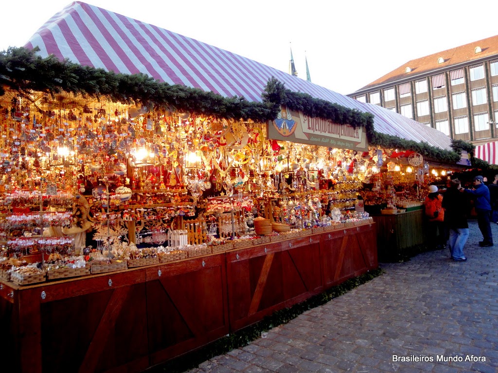 Nürnberg/Nuremberg é uma cidadezinha encantadora, conhecida também pelo seu famoso e tradicional mercado de Natal, que acontece na na praça Hauptmarkt: o Christkindlesmarkt de Nuremberg. No mercado você encontra um pouco de tudo, muitos trabalhos em madeira e enfeites. Se você for por lá, não deixe de experimentar o tradicional pão de mel Lebkuchen. Os mais famosos são os da marca Schmidt, que é vendido também em sensacionais latas próprias. Vale a compra quase somente pela lata!