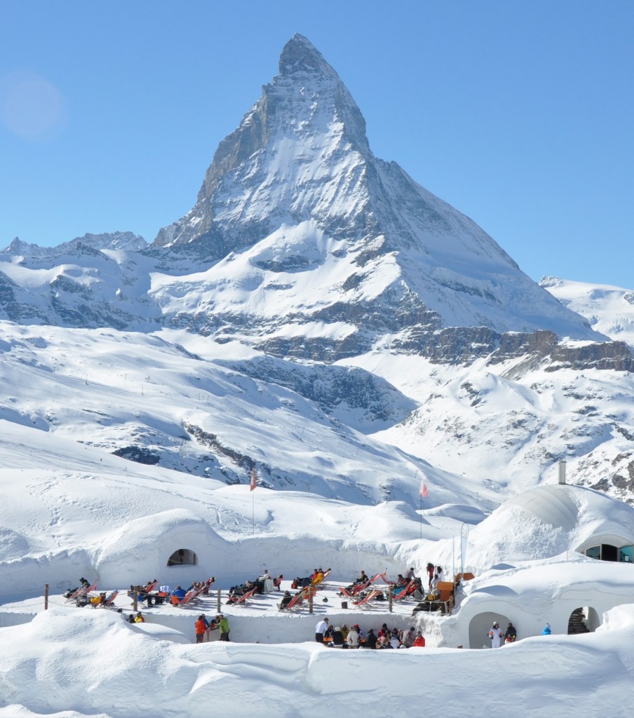 Na frente dos iglus é possível, se o tempo permitir, se desfrutar de bebidas, vinho quente e um delicioso fondue ao ar livre. Espreguiçadeiras com vista para as montanhas convidam a ficar.