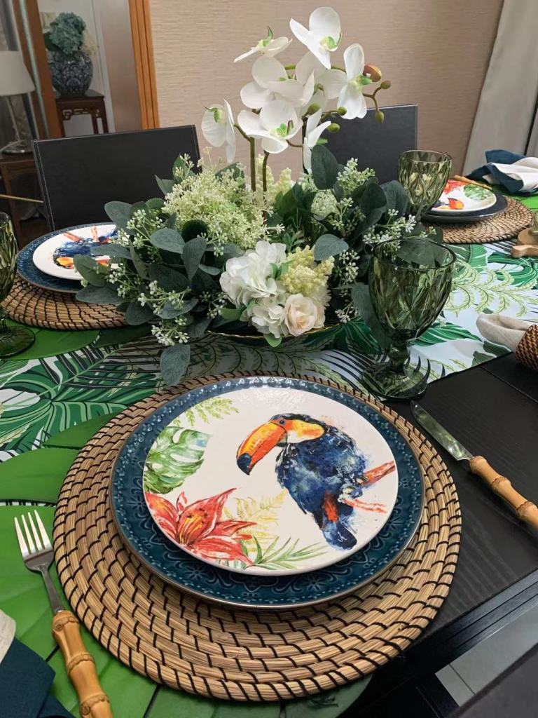 Geralmente, eu crio uma mesa nova por semana, fotografo e publico nas redes sociais e grupos do Wechat e WhatsApp. Muitas pessoas já me falaram que, através do meu trabalho, elas perceberam como é importante montar uma mesa bonita para a família e não somente para visitas. Hoje em dia, vivemos todos ocupados e extremamente vidrados nos computadores e celulares. Na correria do dia-a-dia, muitas vezes, cada um come em horários diferentes. Sentar-se à mesa juntos tornou-se algo raro em muitas famílias. Me emociona receber mensagens de pessoas que se inspiraram na minha arte, resgatando esse hábito, de estarem juntas à mesa.