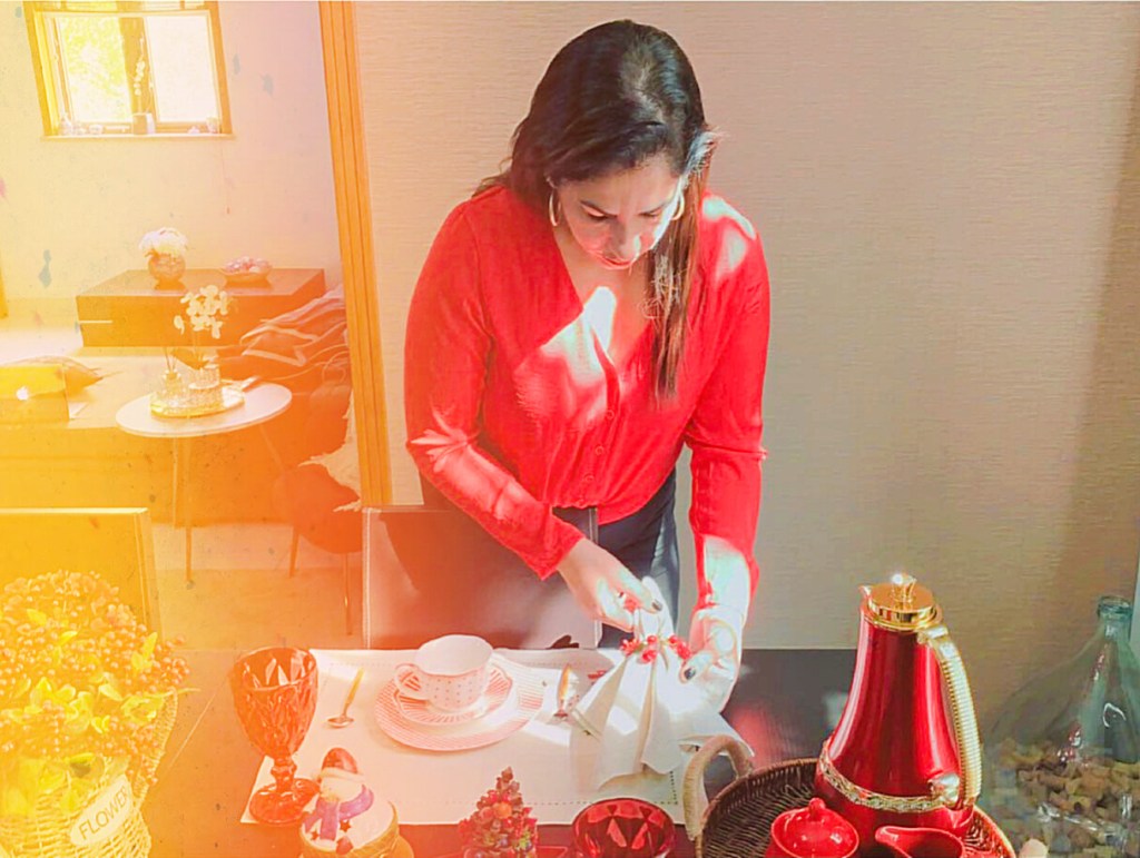 Meu nome é Giovana Pizzolito, tenho 49 anos, nasci no Rio de Janeiro e cresci no interior de São Paulo. Eu sou formada em Administração de Empresas, casada e tenho dois filhos. Após passarmos uma temporada na Alemanha, nos mudamos para a China, onde moro há 10 anos. Eu sempre me interessei por decoração, mas essa facilidade de encontrar produtos com uma variedade incrível aqui na China, me inspirou a explorar mais o tema “mesa posta”, nome que também dei para o meu pequeno negócio. A mesa posta nada mais é do que a organização de pratos, talheres, copos e acessórios sobre a mesa para uma determinada refeição ou ocasião.