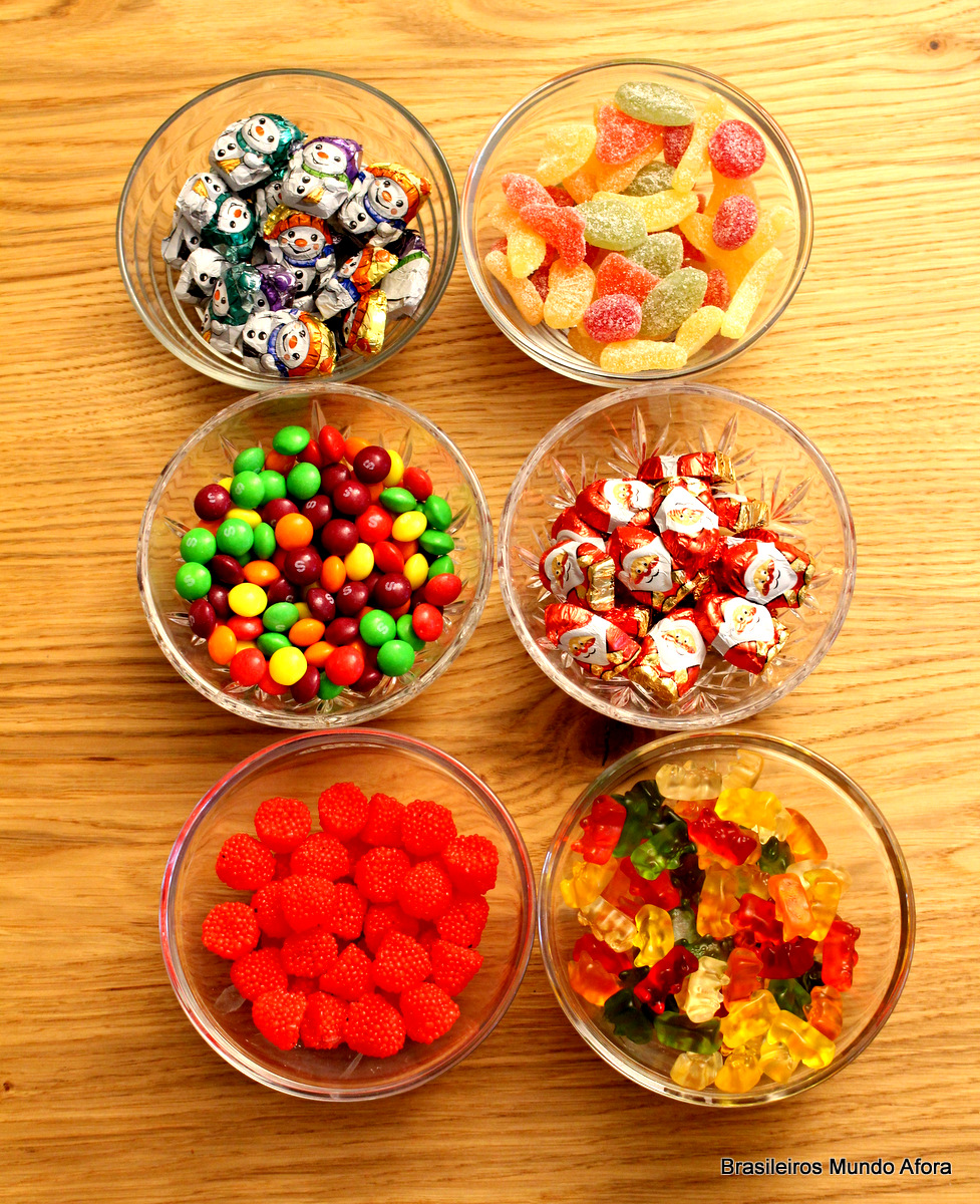 - Smarties, ursinhos de goma, corações de chocolate e outros doces para decorar;