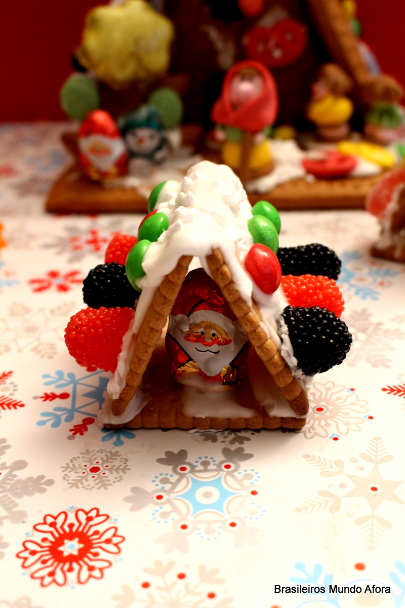 Modo de preparar: em primeiro lugar, decore os biscoitos que serão o teto e o chão. Você pode cobri-los com chocolate derretido ou com o próprio glacê. O próximo passo é a parte mais divertida: decorar os biscoitos. Use sua criatividade! Depois, deixe-os descansar até que a cobertura seque. Você pode acelerar o processo colocando-os no freezer por 10 minutos. Está pronta a sua casinha de Natal!